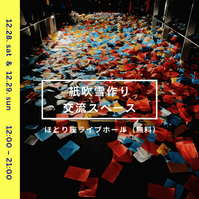 材料をご用意できない方は、ほとり座のカフェブースにて紙吹雪の用紙を販売しますのでご安心を◎(28日・29日のみ)